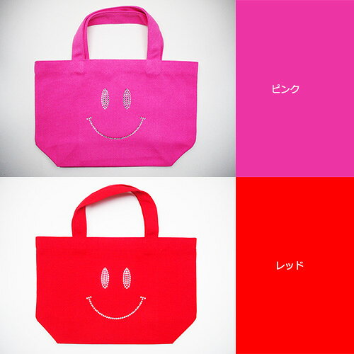 スワロフスキーの布用ストーンを使用したスマイルマークのトートバッグ♪