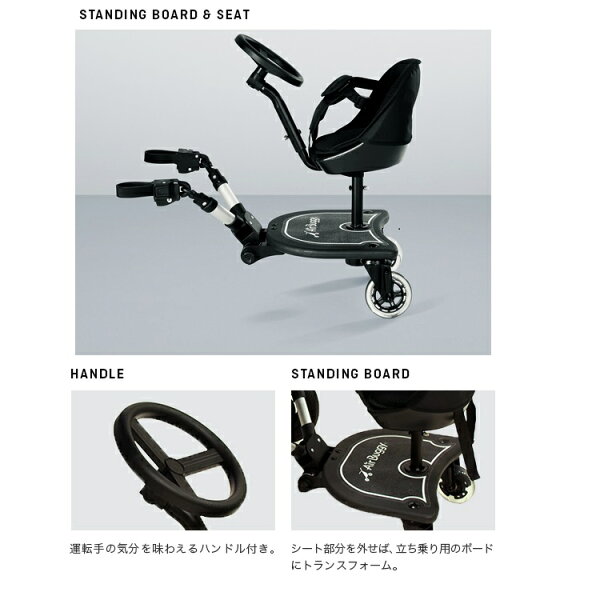 ■□スペック□■ ■サイズ:W34(ボード幅)×L53-66×H55cm H15.5(地面からのステップ高さ)H34cm(地面からのシート高さ) ■対象年齢:15ヶ月以上 ■耐荷重:25kg ■対応ベビーカー:COCO BRAKE/COCO PREMIER/COCO STANDARD (MIMIは対象外です) ■□※ご注意ください※□■ ・本製品を使用することができるのは、ベビーカーにもお子様が乗っている場合、 または、ベビーカーを押すための持ち手部分を大人が両手でしっかりと握っている場合のみです。